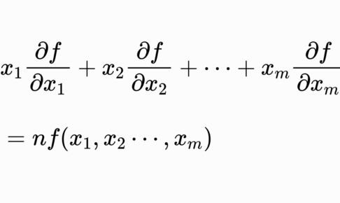同次関数におけるオイラーの定理の証明 同次関数におけるオイラーの定理とは まずn次の同時関数とは 次の条件を満たす関数として定義される。 $$f(ax_1,ax_2\cdots ,ax_m)=a^n f(x_1,x_2\…