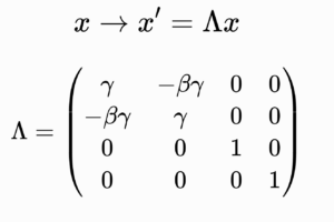 と書ける。上式で光速度が不変であることから $c$は共通であることに注意。